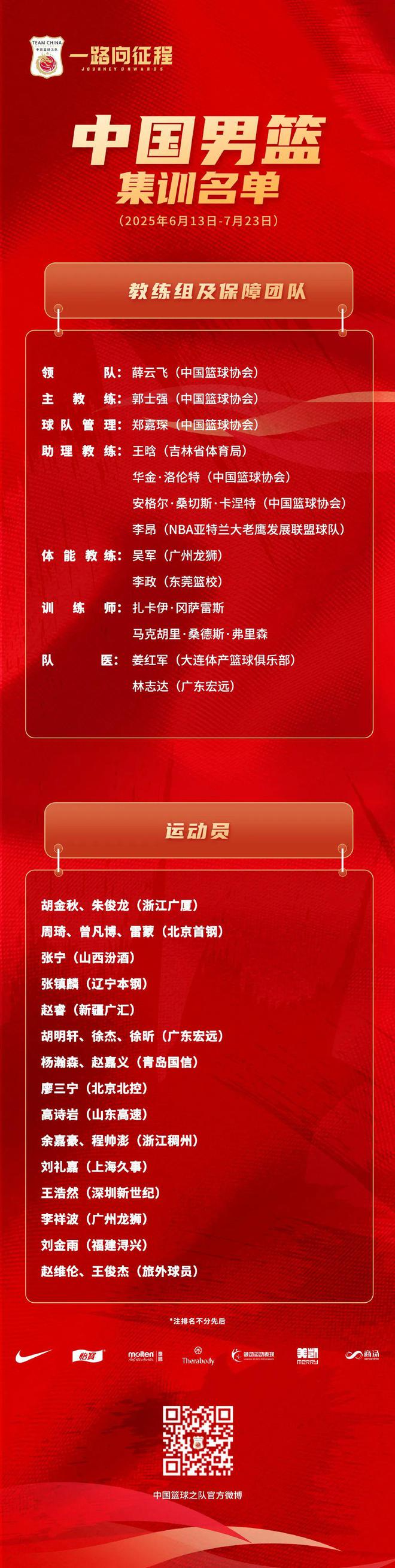 2025年6月9日,中国男篮公布了最新一期国家队集训名单,北控篮球俱乐部队员廖三宁再次入选!